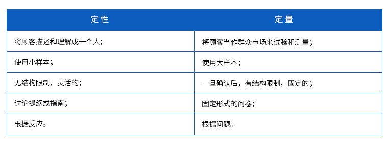 定性研究和定量研究在原理和方法上有著明顯的不同,定性研究回答“為什么”的問題,而定量研究回答“有多少”的問題??蛻艨梢允褂枚ㄐ匝芯窟M行“認識、發現、判斷、了解”,而不能使用它進行“測量、監控、估計、預測”,這方面的問題應當用定量研究的方法去解決。